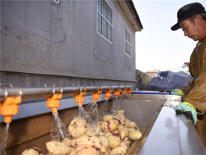 今年秋天,他們到相鄰的上官家溝村收購了近7萬公斤質(zhì)量上乘的地瓜,可加工地瓜煎餅1.5萬公斤左右,基本滿足客戶訂單需求。
