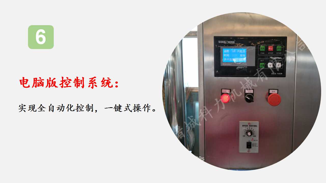 煙熏爐采用PLC控制面板,可設(shè)定烘干的時(shí)間、溫度以及煙熏的時(shí)間溫度、發(fā)煙電加熱管的工作時(shí)間,還有控制發(fā)煙室發(fā)煙大小的快捷鍵,操作簡捷易控制。具體操作即加減設(shè)定溫度時(shí)間,設(shè)置過程中啟動(dòng)鍵來完成移位的作用。控制箱接線時(shí),注意正反電級(jí),線路接錯(cuò)電機(jī)會(huì)倒轉(zhuǎn),產(chǎn)生噪音,此時(shí)可將兩根線的位置交換一下來排除。