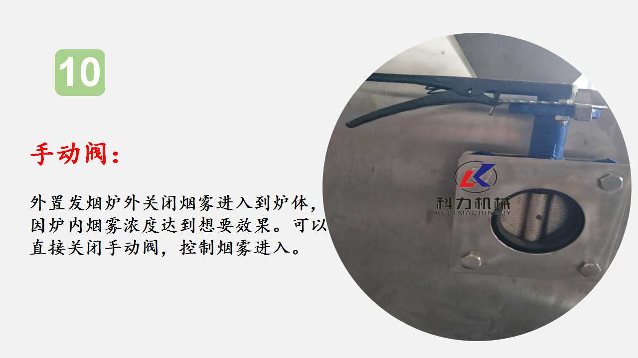 對(duì)流閥:可控制大小,爐體對(duì)流閥可加速排出加工完成后煙霧的排出速度,節(jié)約時(shí)間,提高工作效率;發(fā)煙室對(duì)流閥可控制發(fā)煙的速度。