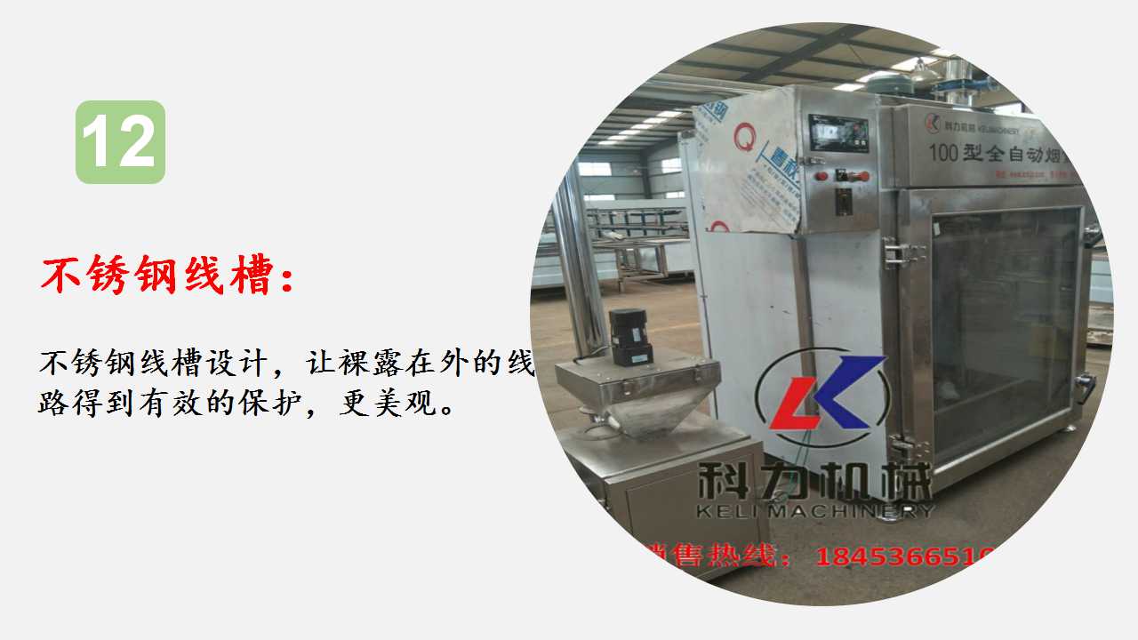 獨(dú)立煙道:保證爐內(nèi)產(chǎn)品上下溫度一致、煙熏色澤一致。
