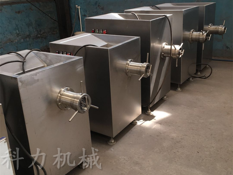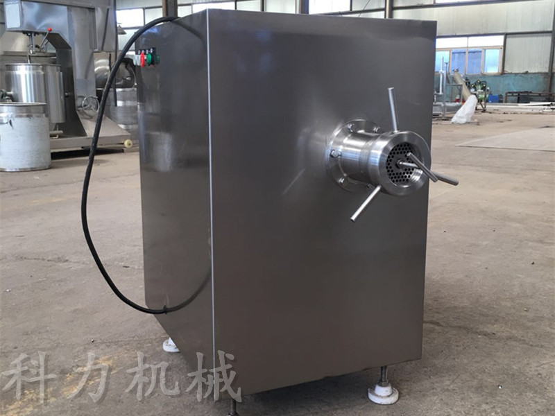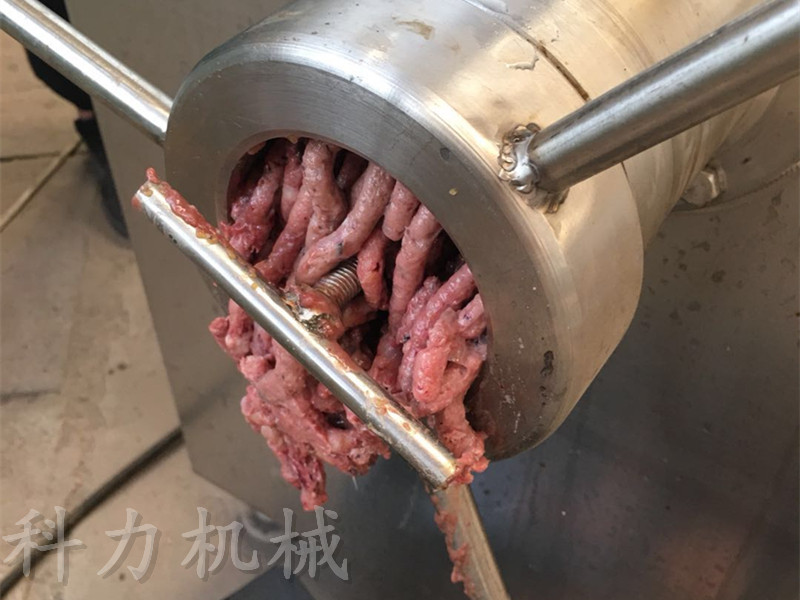凍肉絞肉機是肉制品生產(chǎn)行業(yè)中通用性高、使用范圍廣的一種肉食加工設(shè)備。它是依靠螺桿將料斗箱中的原料肉推到預(yù)切板處,通過螺桿的旋轉(zhuǎn)擠壓使孔板與絞刀產(chǎn)生相對質(zhì)運轉(zhuǎn),從而將原料肉切成顆粒形狀,確保了肉餡的均勻性。通過孔板的不同組合可達到理想的要求的不同肉餡。