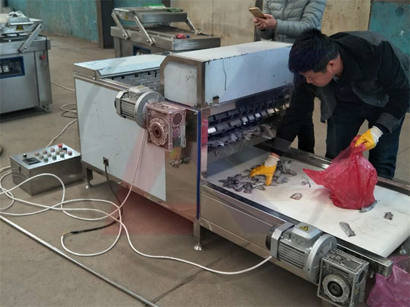 諸城市科力機(jī)械研制的全自動(dòng)系列切魚機(jī),又叫帶魚段機(jī)、刀魚段機(jī)。有切凍魚機(jī)、切鮮魚機(jī)、有橡膠輸送帶切魚機(jī)、有不銹鋼輸送帶切魚機(jī)。用戶可以按照所切魚的長(zhǎng)度選擇切魚機(jī)型號(hào)。所切魚段的長(zhǎng)度是可調(diào)的。由下面輸送帶傳送,上傳送帶壓住后送往圓刀下高速切割,切面平整無(wú)碎屑,效率高,每小時(shí)可切1噸。輸送帶速度可調(diào)。
