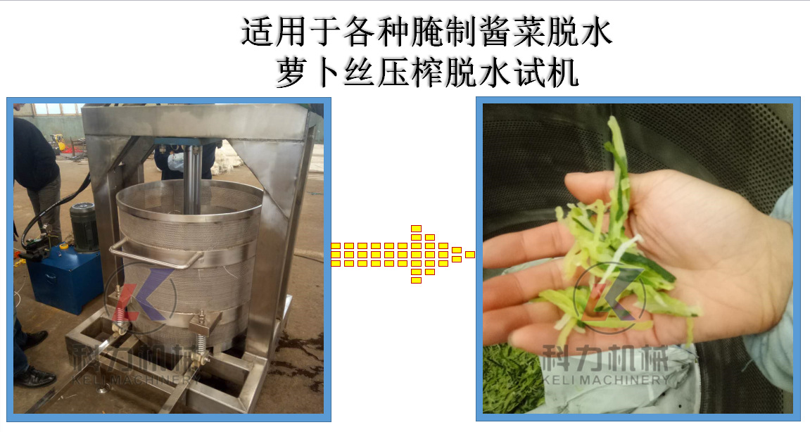 主要用于醬菜壓榨,例如蘿卜、芥菜、榨菜等的壓榨去水,去水量可達70%。