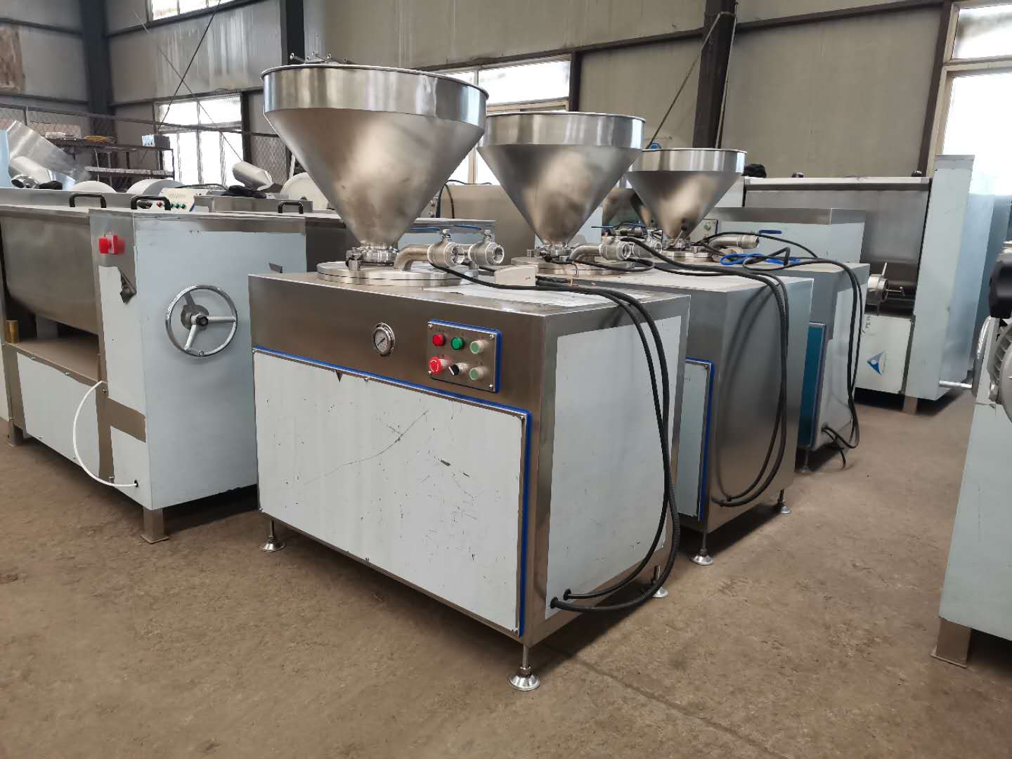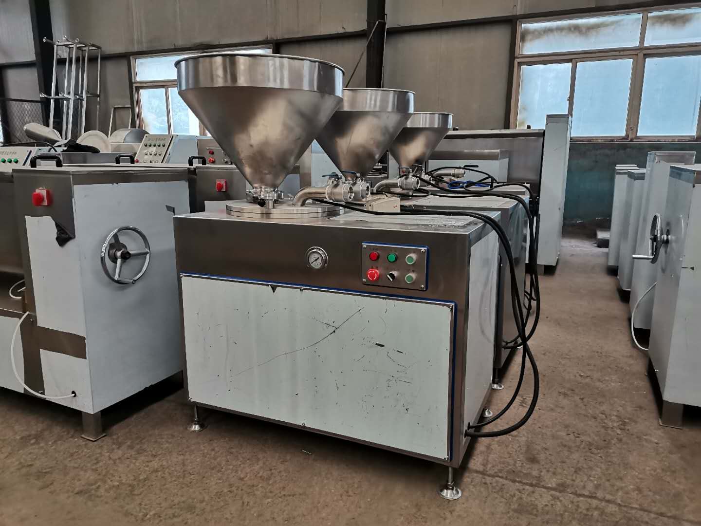 液壓灌腸機(jī)是加工腸類制品的設(shè)備。能灌制大、中、小各種規(guī)格的腸制品。該產(chǎn)品外形美觀、做工精良、操作方便、使用安全可靠。該機(jī)的料斗、閥門、灌腸管及整機(jī)外包裝均采用不銹鋼制造。符合食品衛(wèi)生要求。